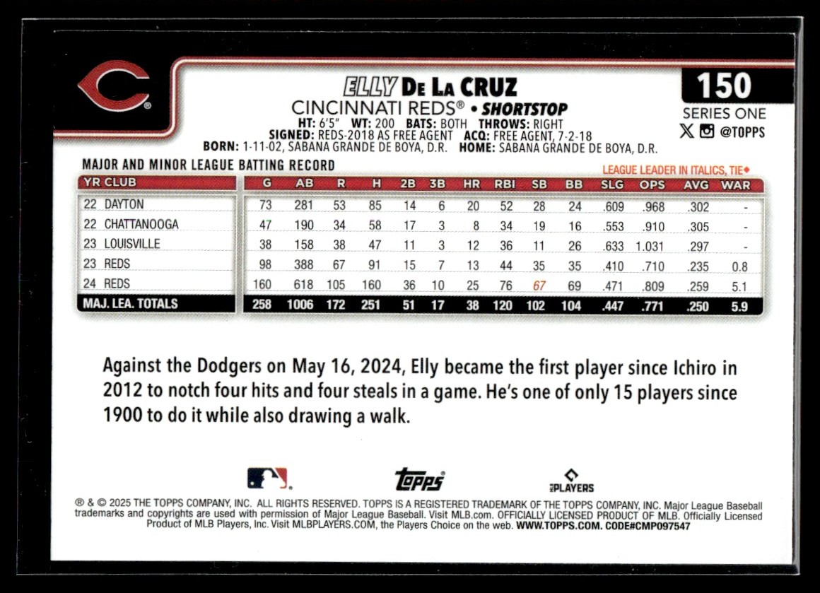| 2025 Topps Elly De La Cruz Cincinnati Reds #150 |