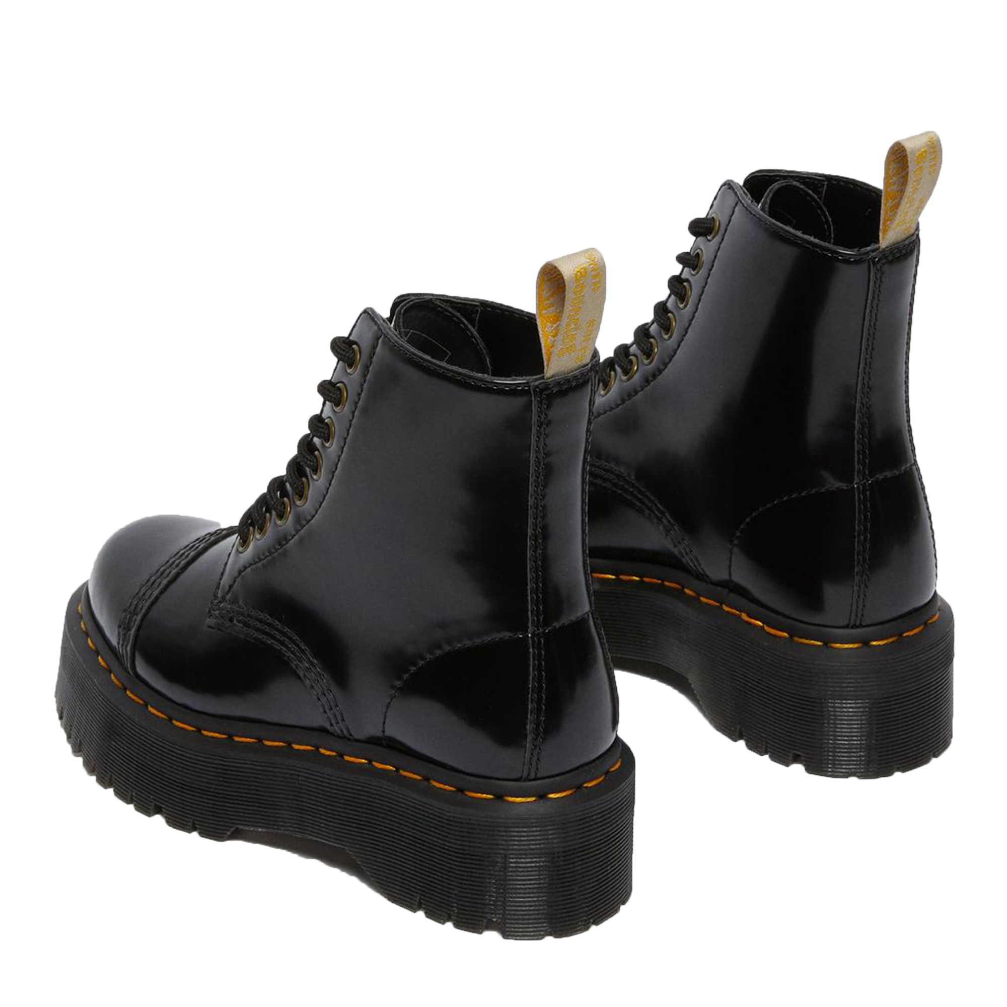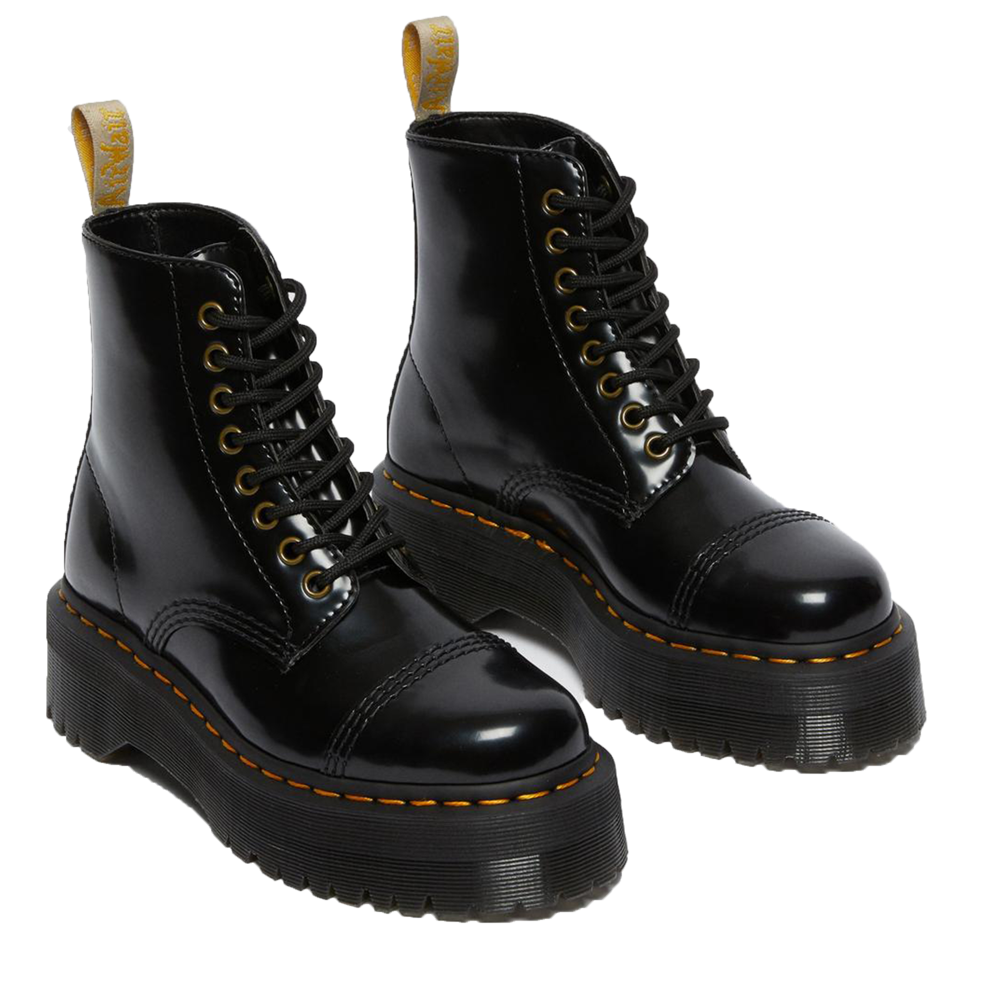 Tu li hai chiesti. E noi ti abbiamo ascoltato. Il nostro stivale Sinclair è stato rielaborato nel materiale sintetico Oxford. Resistenti, senza compromessi e montati su una suola Bex, questi stivali platform vegan sono rifiniti con cuciture gialle e una fettuccia posteriore gialla e bianca che rafforza il nostro inconfondibile DNA.