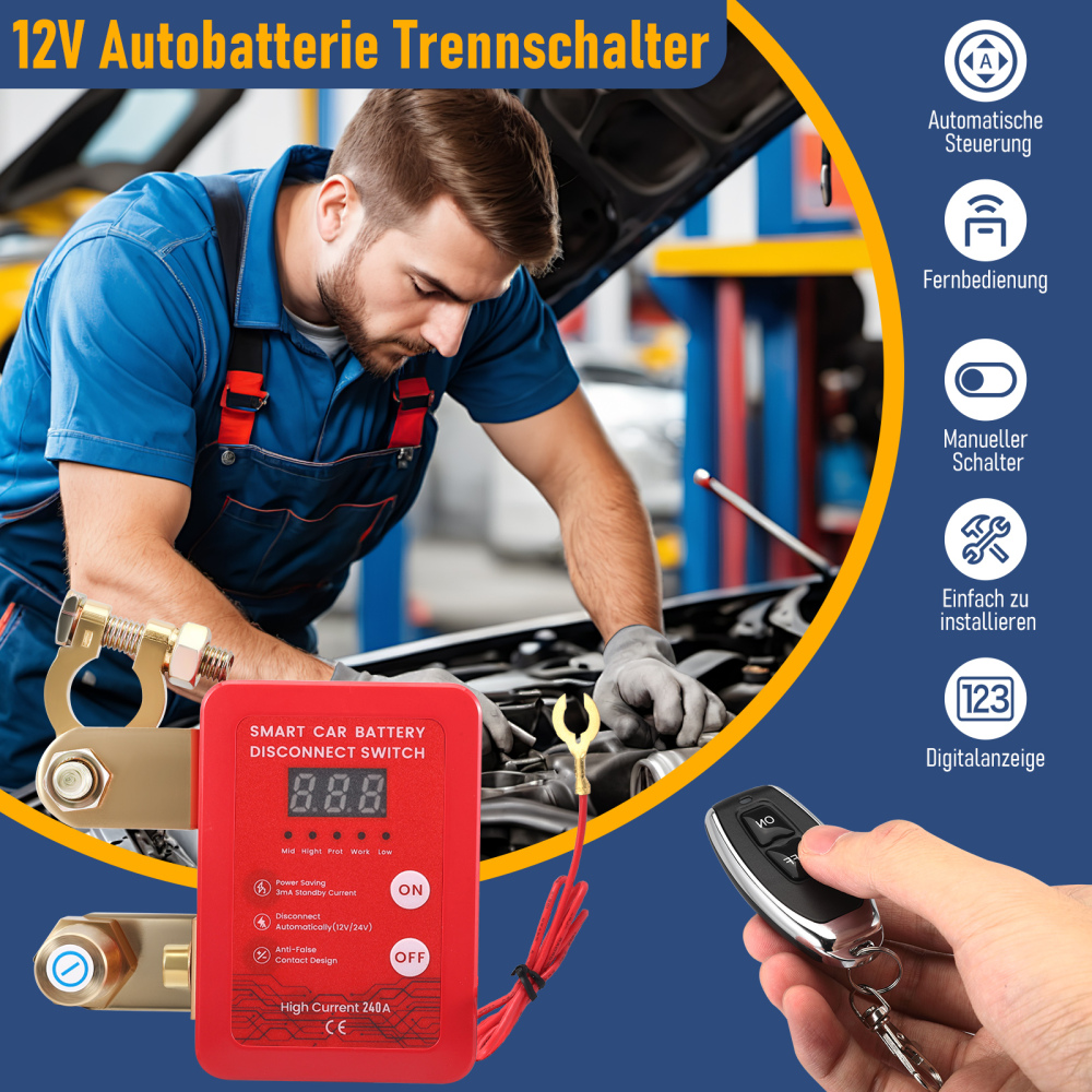 Batterie Trennschalter 12V,Drahtloser Ferngesteuerter Auto Trennschalter,Smart Batterie Kill Switch Anti-Diebstahl,Automatischer Ausschalter,Trennrelais für Auto,RV,ATV,LKW,Boot (digitaler Anzeige)