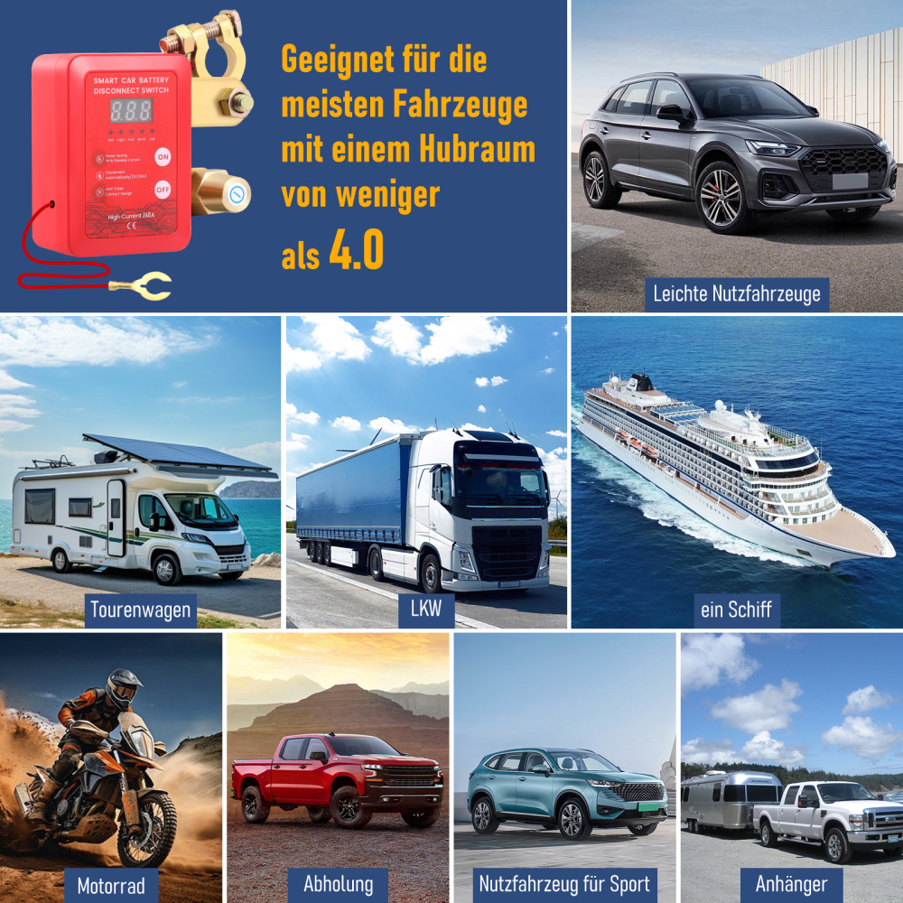 👍【Weiter Anwendungsbereich】Batterieschalter 12v trennschalter ist geeignet für die meisten Autos, Boote, Wohnwagen, Wohnmobile, Wohnwagen, Lastwagen, Geländewagen, UTVs, Motorräder, Beach Bikes mit Hubraum weniger als 4.0, Motorräder, und so weiter.