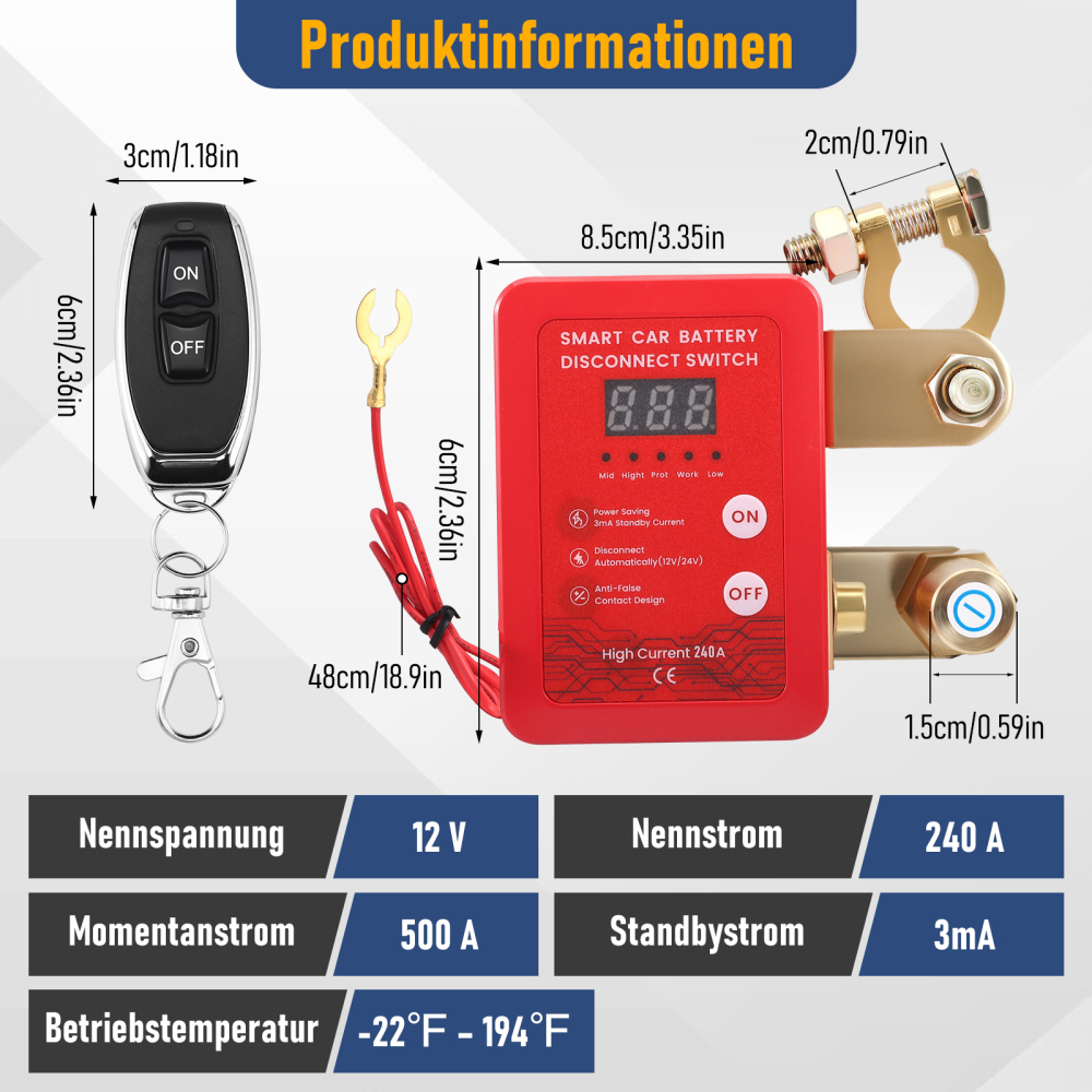 Hinweis: Der Trennschalter kann ein Auslaufen und einen Stromverlust verhindern, wodurch die Lebensdauer der Batterie effektiv verlängert werden kann. Es sollte beachtet werden, dass er nicht dazu gedacht ist, Batterien zu reparieren, die über einen langen Zeitraum verwendet wurden und sich dem Ende ihrer Nutzungsdauer nähern, so dass sie wieder in den Zustand neuer Batterien versetzt werden können. Für Fahrzeugbatterien wird empfohlen, sie alle zwei bis drei Jahre auszutauschen, um die elektrische Sicherheit und die Leistung der Geräte zu gewährleisten.