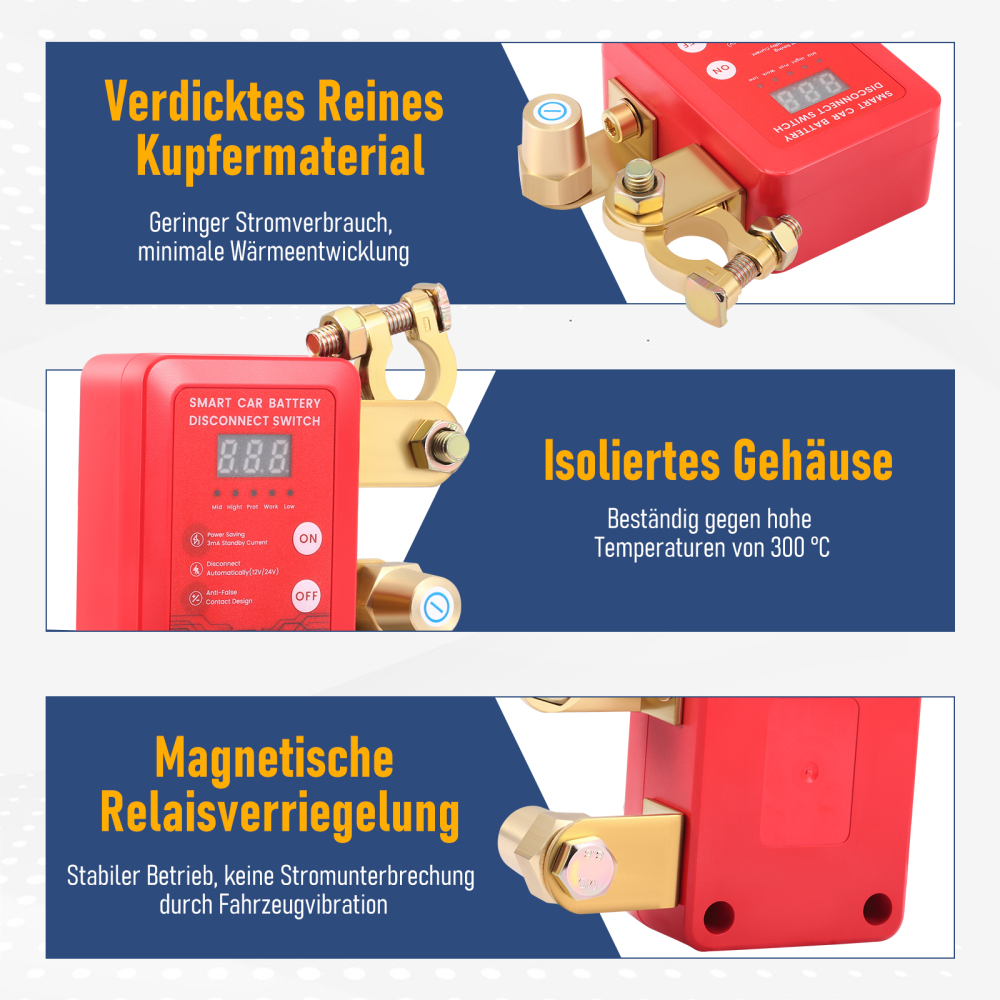 👍【Sicheres Material】Batterie trennschalter 12v ist aus reinem Kupfer, kann leicht unter hohem Strom bis zu 4,0 Bit verwendet werden. Speicherfunktion, der Batterietrennschalter nimmt doppelte magnetische Speicherung an, kein Stromverbrauch nach dem Einschalten, Speicherrelais, auch wenn es keine Stromversorgung gibt, behält das Relais den ursprünglichen Speicherzustand unverändert.
