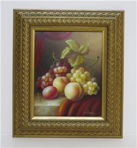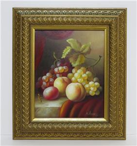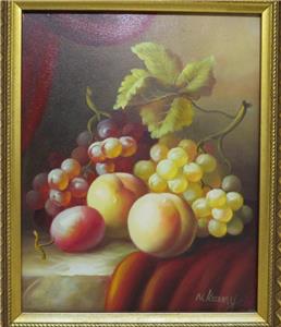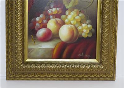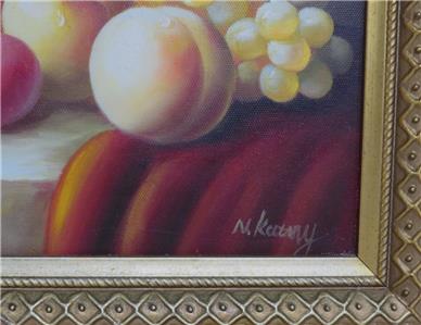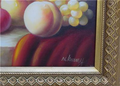 DESCRIPTION: .... Greetings! Thanks for stopping in, up for sale for your Consideration: ~~ Original Oil Painting Fruit Still Life on Canvas by N. Katny Ornately Framed ~~