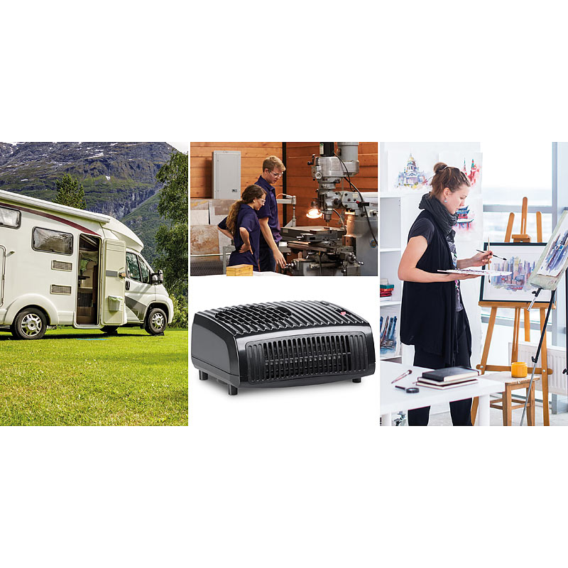 - Ideal zum schnellen Anheizen von kleinen Raumen, z.B. Hobbyraum, Wohnmobil, Arbeits- und Badezimmer oder zum Enteisen im Auto