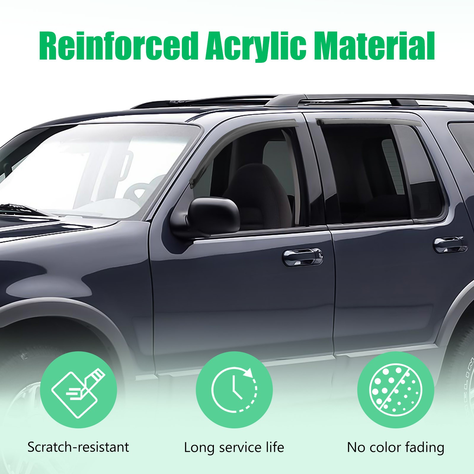 Tape-On Dark Tinted Side Window Visor Rain Guards For 1991-2005 Ford Explorer