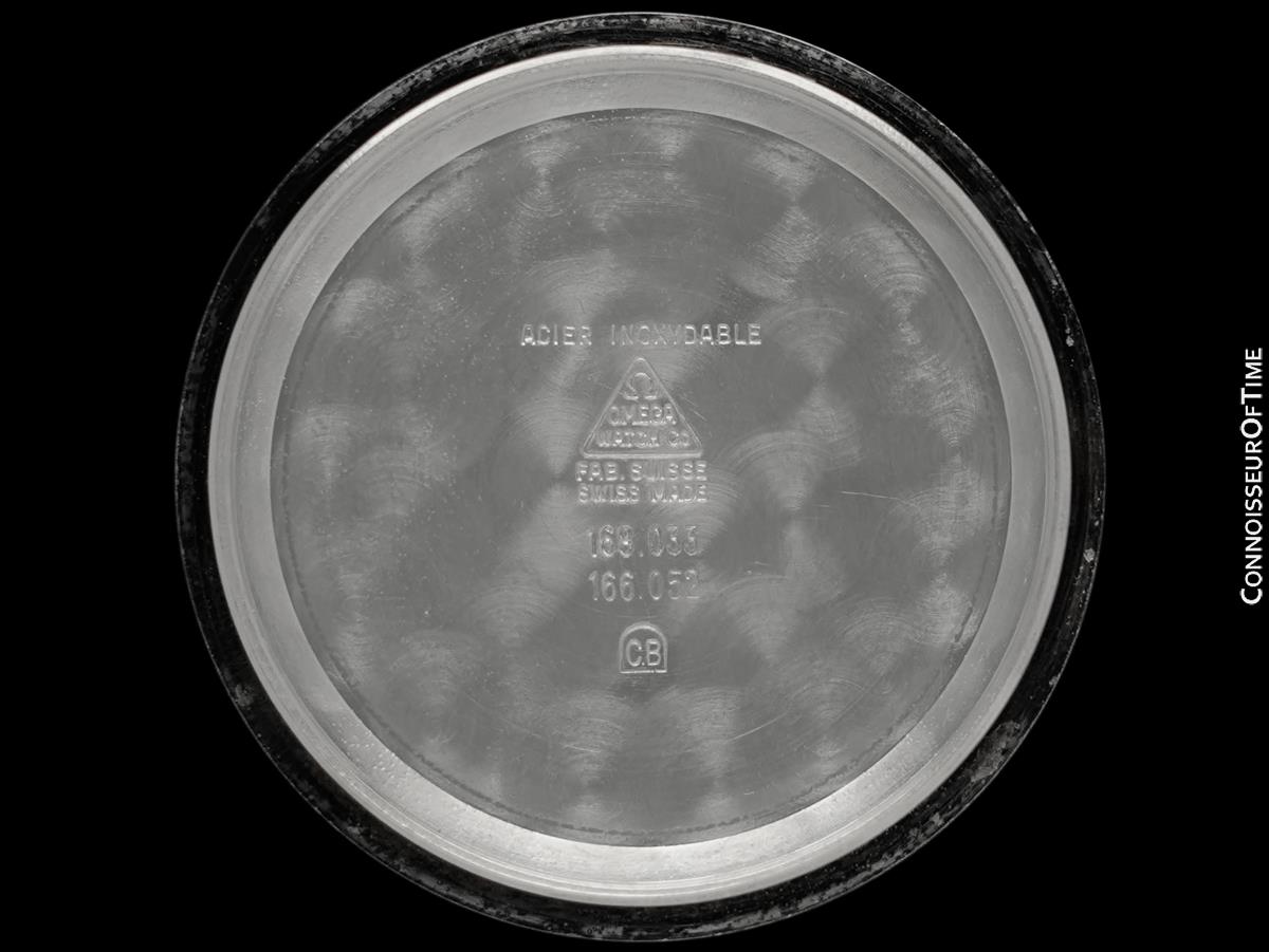 • Case markings (inside): Omega Watch Co., Swiss made, Stainless Steel, S.F, 168.033