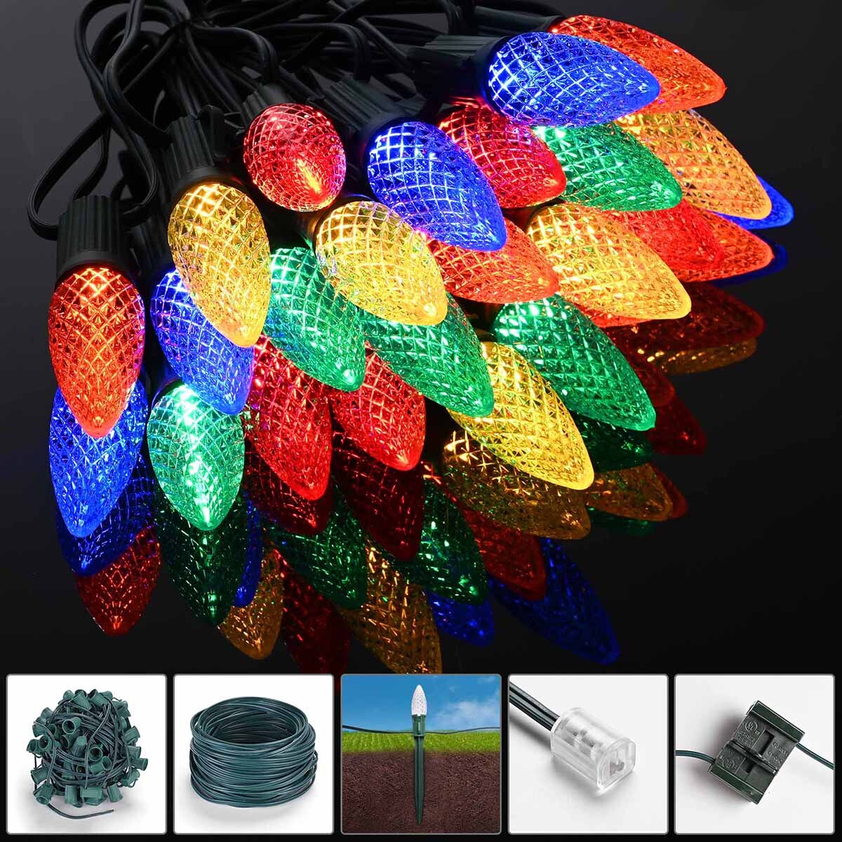 DELight C9 Christmas Lights Outdoor 100FT String Light w/ 100 Stakes Pathway
