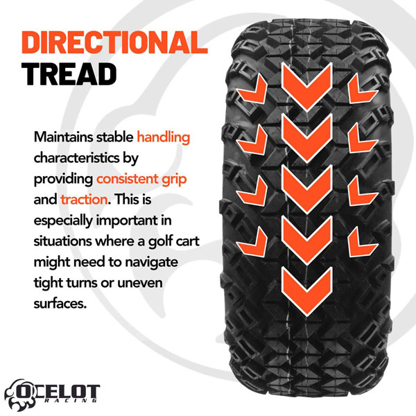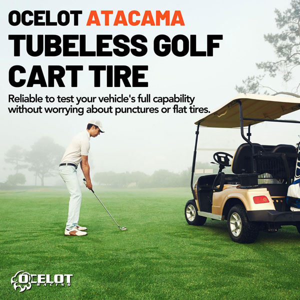 There are two types of tread: turf/street and all-terrain. Turf/street treads are meant for use on paved roads and golf courses. All-terrain tread like this product is best for adventurous golf carts. It grips better and can handle the street and really wherever you want to go. The size of the tire is an important characteristic as well. Tire size is mainly a safety concern. You want to make sure your cart has the right sized tires. The most common size is 18 X 8.5-8. Theoretically, the larger the tire, the more it can handle. So, your stock golf cart tires will come in a size that is mainly equipped to handle pavement. The Ocelot Atacama Golf Cart Tire comes in eight sizes, so you can pick the size that fits your needs. Now that you know some of ins and outs of golf cart tires, what’s stopping you from picking up a set of these Ocelot Atacama Golf Cart Tire? Read more about the full specs below.