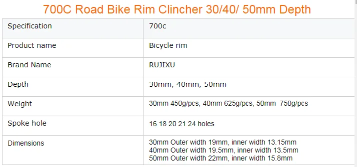 The 30mm rims support 16-hole, 18-hole, 20-hole and 24-hole designs. The 40mm rims support 16-hole, 20-hole and 24-hole designs. The 50mm rims support 16-hole, 20-hole and 24-hole designs.