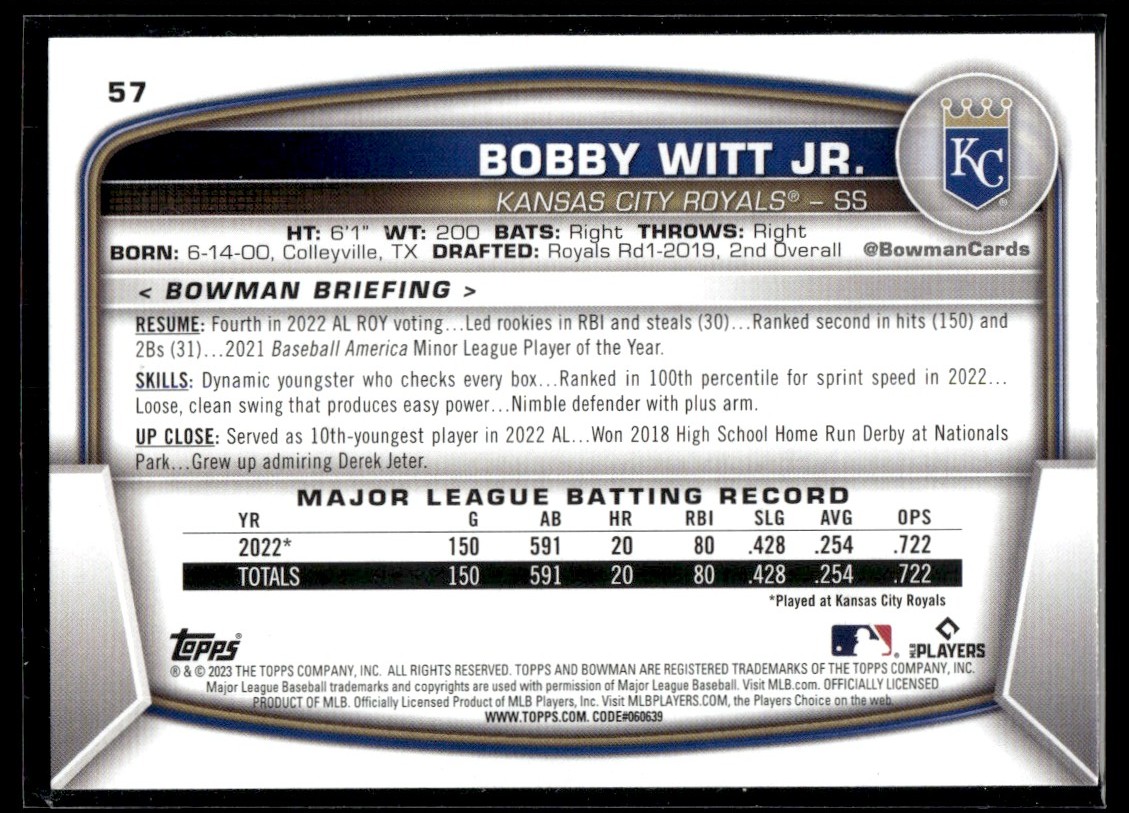 | 2023 Bowman Bobby Witt Jr. Kansas City Royals #57 |