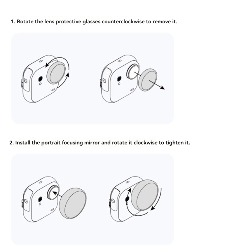 l Before use, please make sure the portrait focusing lens is fully screwed on to avoid the lens from loosening and falling off or water getting inside the lens to affect the shooting.