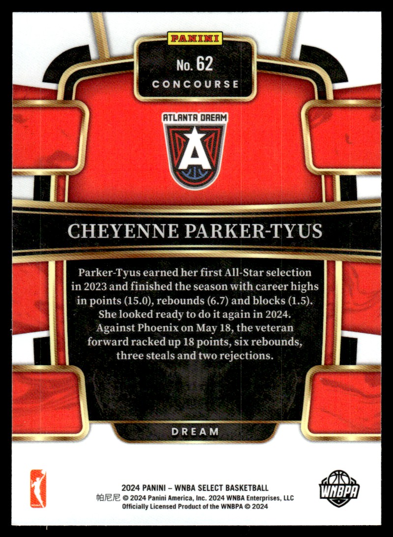 | 2024-25 Panini Select WNBA Cheyenne Parker-Tyus Atlanta Dream #62 |