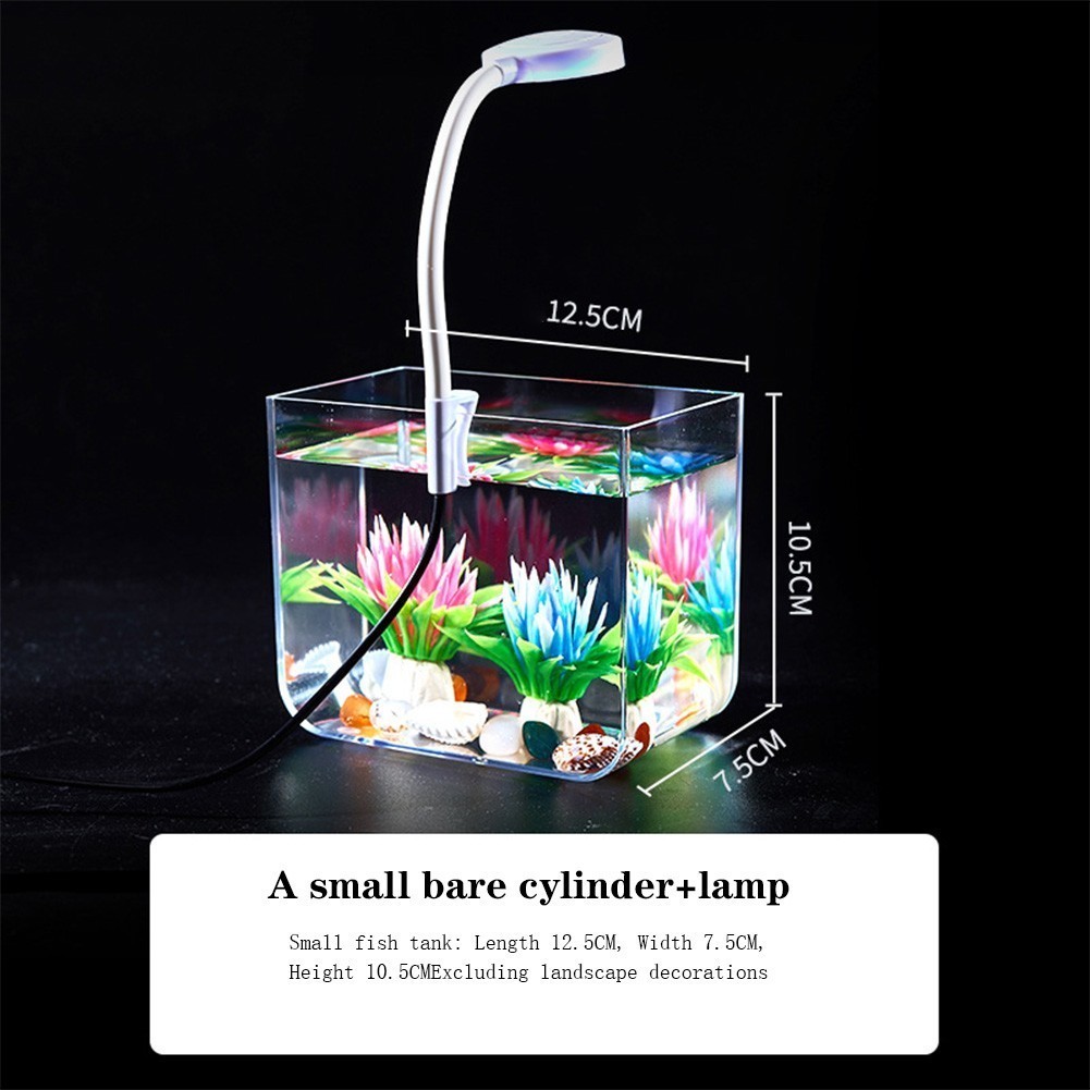 New 1 / 2.5L Aquarium Starter Kits Transparent PS Fish Tank with 3W Light Rectangular Aquarium Tank for Betta Fish, Goldfish and Shrimp as Living Room Office Decoration