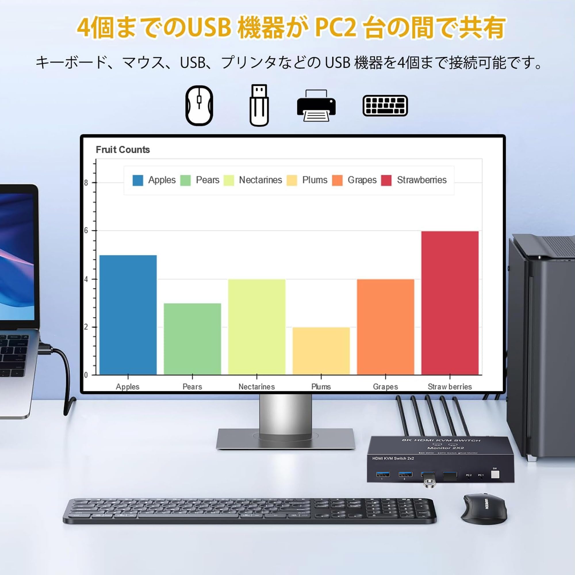 8K Dual Monitor HDMI KVM Switch SW220 2 PC 1 Output Simultaneous Display Japan