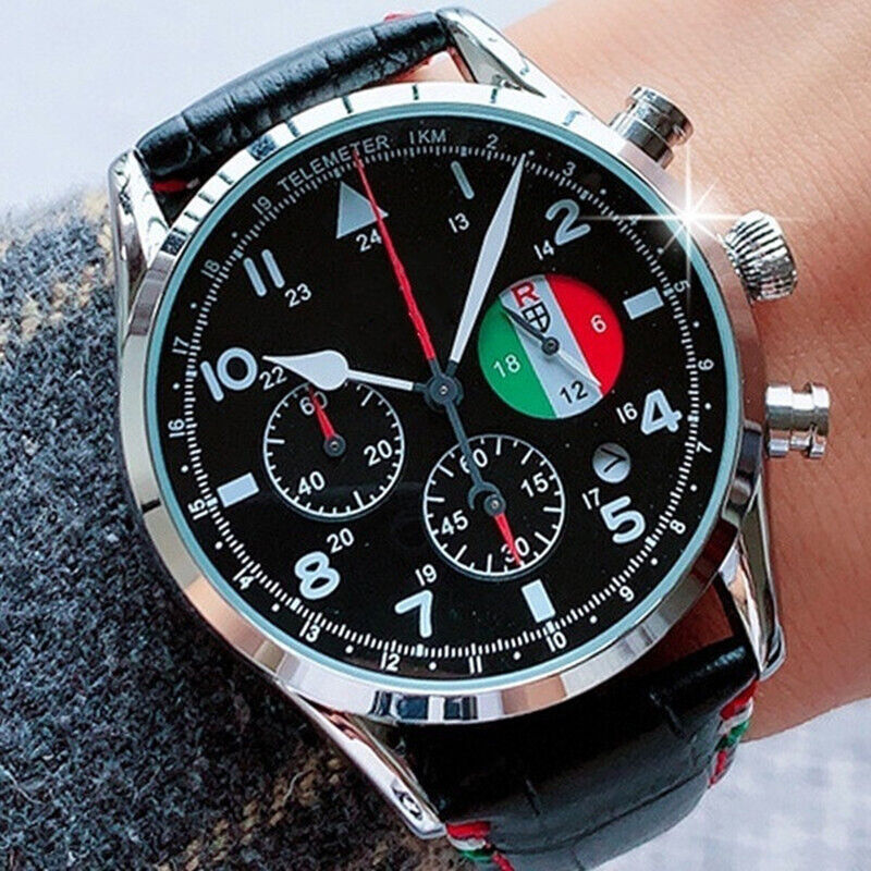 Functions: hour, minute, second, date, chronograph, pilots, day. Sport watch style.