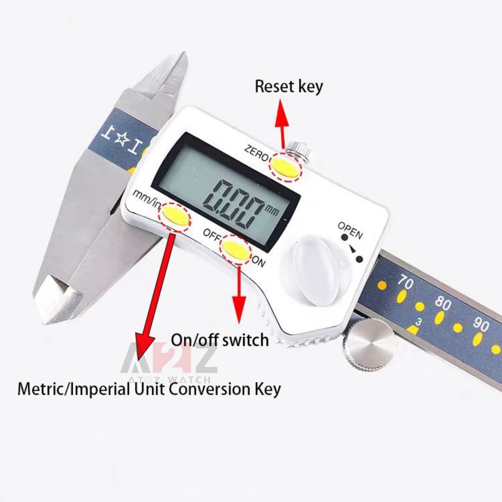 Inch/ Millimeter Conversion One button quickly changes between two measuring modes: inch, millimeter, you can measure the internal, external dimensions, diameters, depth and steps with just one measuring tool.