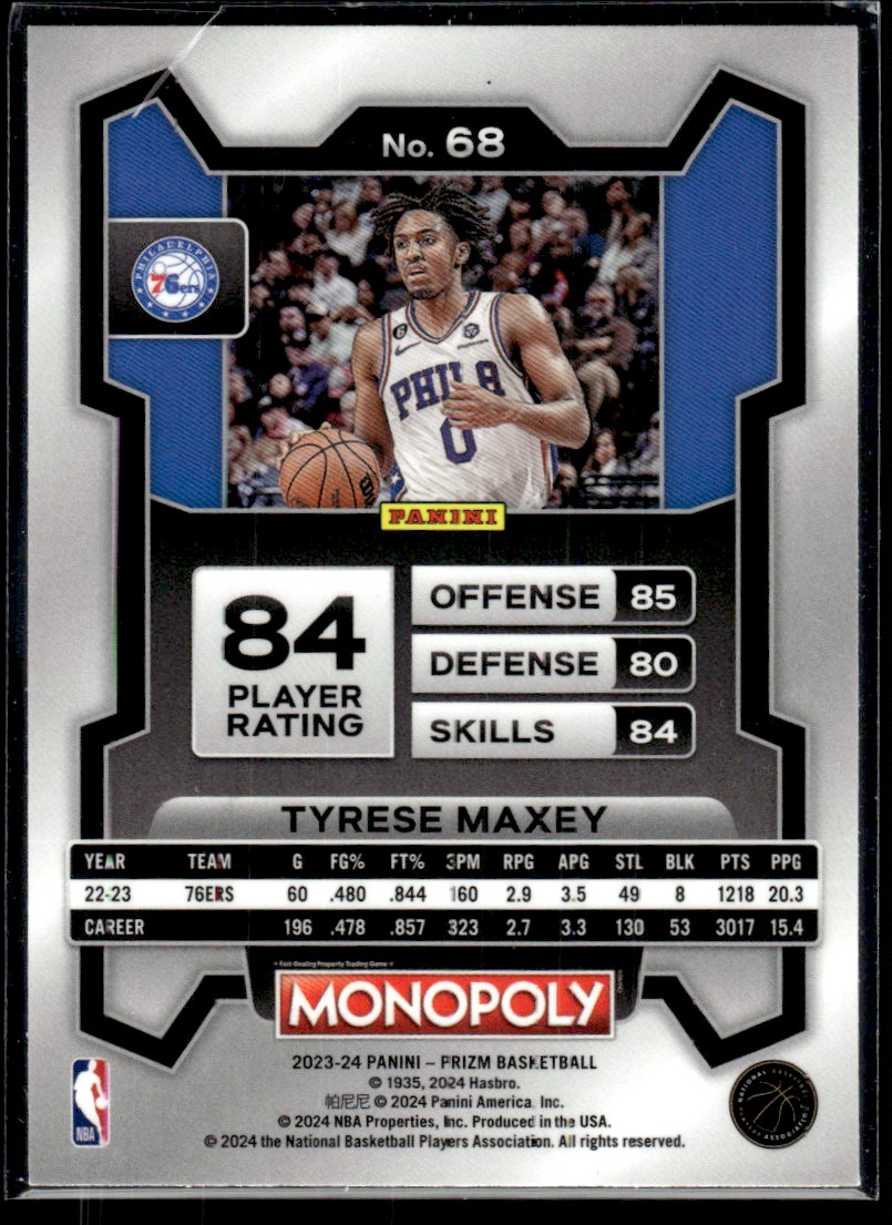 | 2023-24 Panini Prizm Monopoly Tyrese Maxey Philadelphia 76ers #68 |