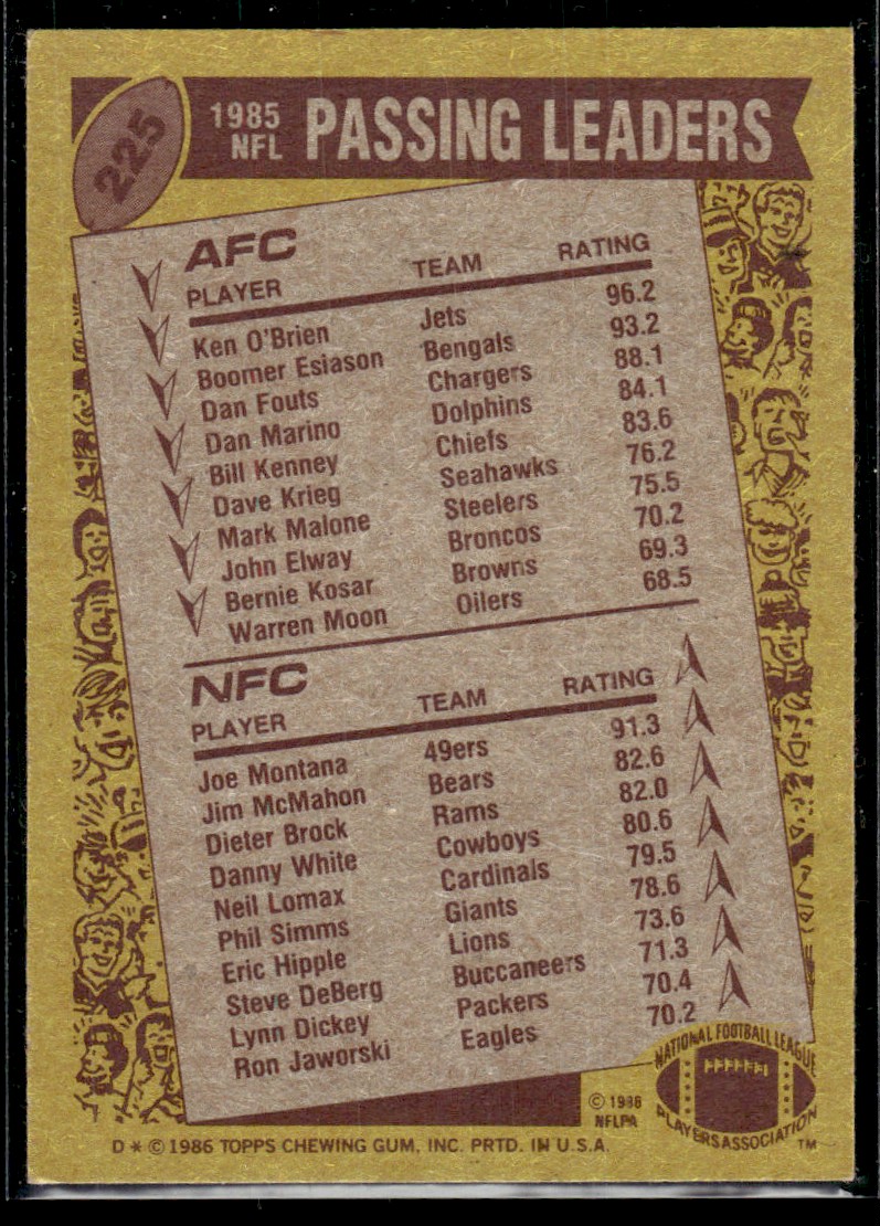 | 1986 Topps Ken O'Brien/Joe Montana New York Jets/San Francisco 49ers #225 |