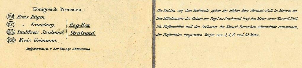 - Hinweis zum Ausgabejahr 1889/1900: Obwohl die Karte mit dem Jahr 1889 datiert ist, zeigt sich dieses Blatt als Ausgabe um 1900. Denn die Rügenschen Kleinbahnen einschließlich aller Haltestationen finden wir auf der Karte eingetragen. Die Bahnlinie wurde zwischen 1895 und 1899 in Betrieb genommen.