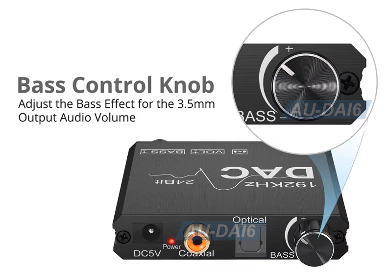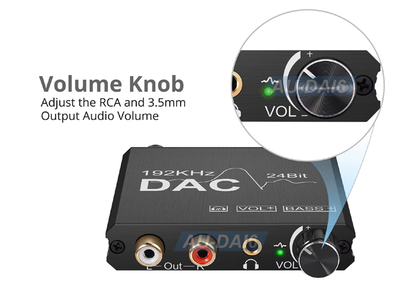 Equipped with an independent volume control knob and a bass enhancement knob, this DAC gives users full control over their listening experience.