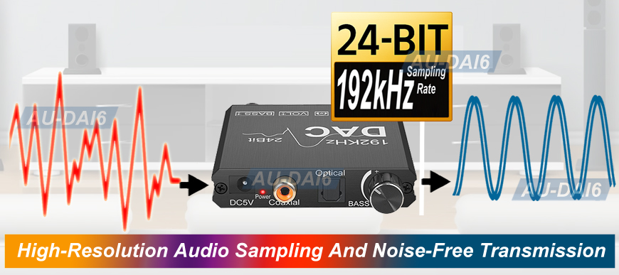 This DAC converter is ideal for connection with audio equipments such as AV receiver, computer sound card, mixer, audio switcher, stereo amplifier, Hi-Fi system or recording deck via the standard RCA connectors.