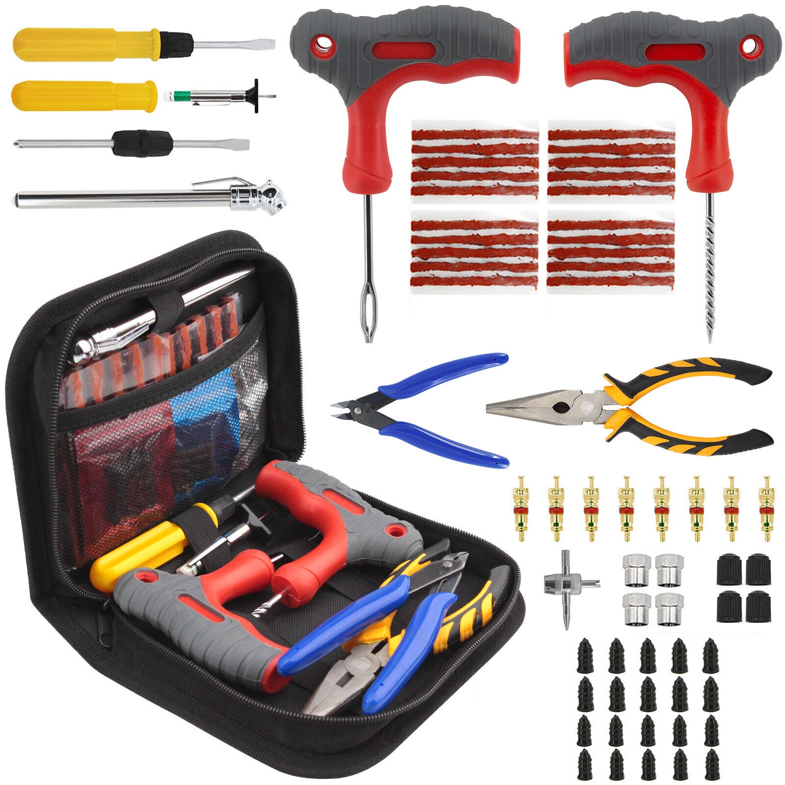 The tyre repair kit comes with a storage bag, which is easy to carry and ideal to keep in the car for use in case of emergency with tyres on the road.