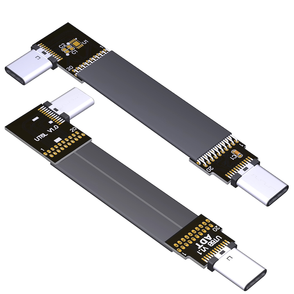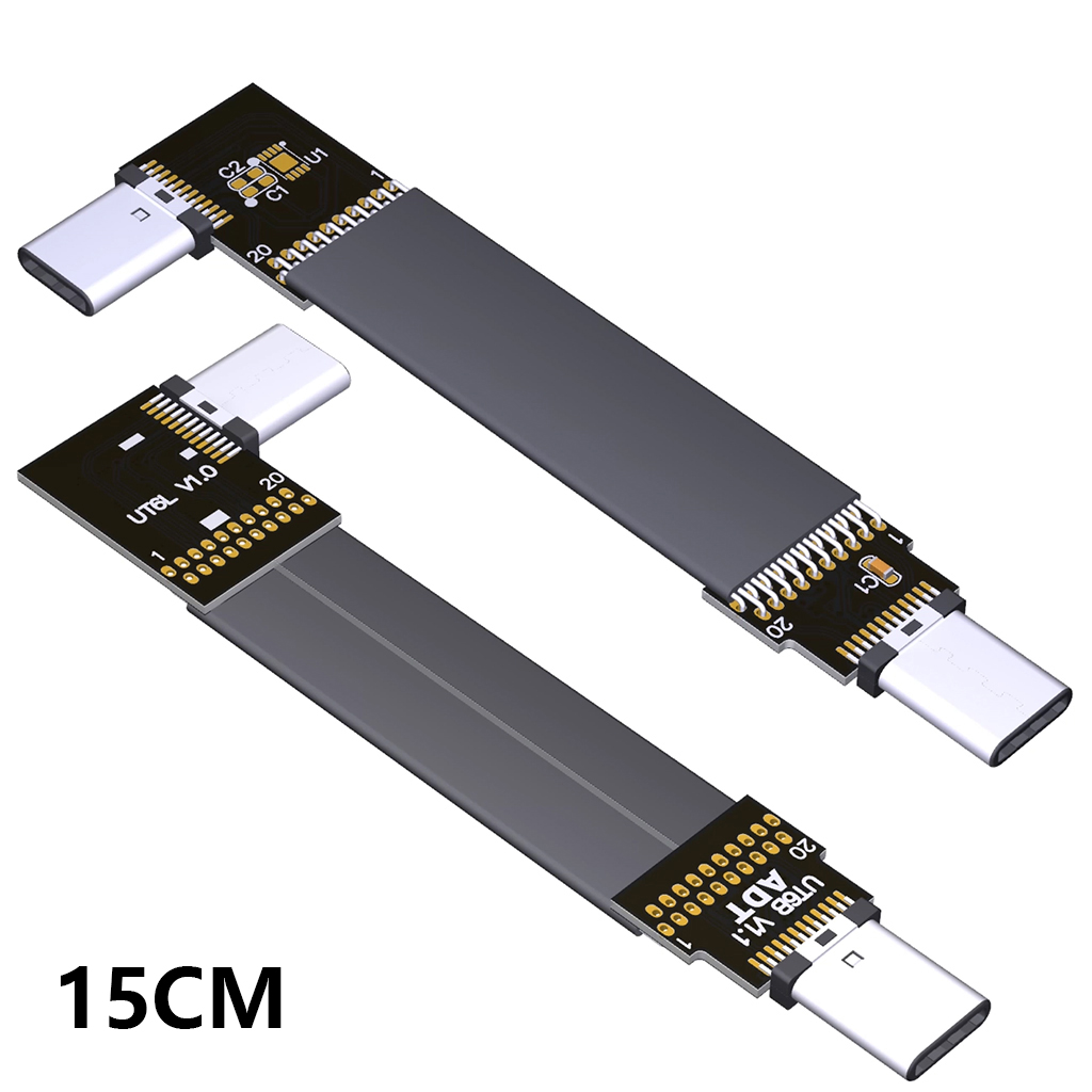 (ADT Link) USB 3.2 Flat Data Flexible Soft Strip Extension Cable C Male Type-C Lightweight and Short ADT gen2x2 (T6B-T6L-NC/15CM)