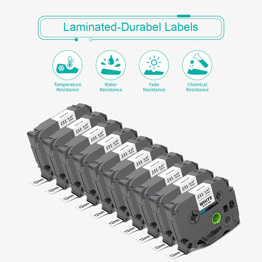 Label Maker Tape 12mm 0.47 Laminated White, Replacement for Brother P Touch Label Tape TZe-231 TZe231 TZe TZ Tape, Compatible with Brother PT-D210 D220 H110 D200 D400 D410 D600 D610BT, 100-Pack