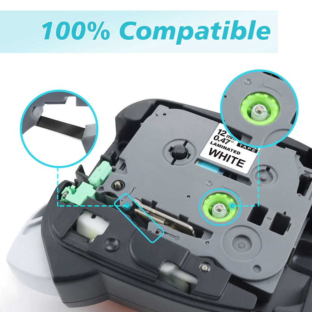 Ready to Print, Perfectly Compatible with Brother P Touch Label Makers: Replacement for Brother label maker tape 12mm 0.47 white works flawlessly with your PT-D210, PT-H110, PT-D220, PT-H111 and more. Simply load and print with confidence—no compatibility concerns. Enjoy smooth, hassle-free labeling every time.