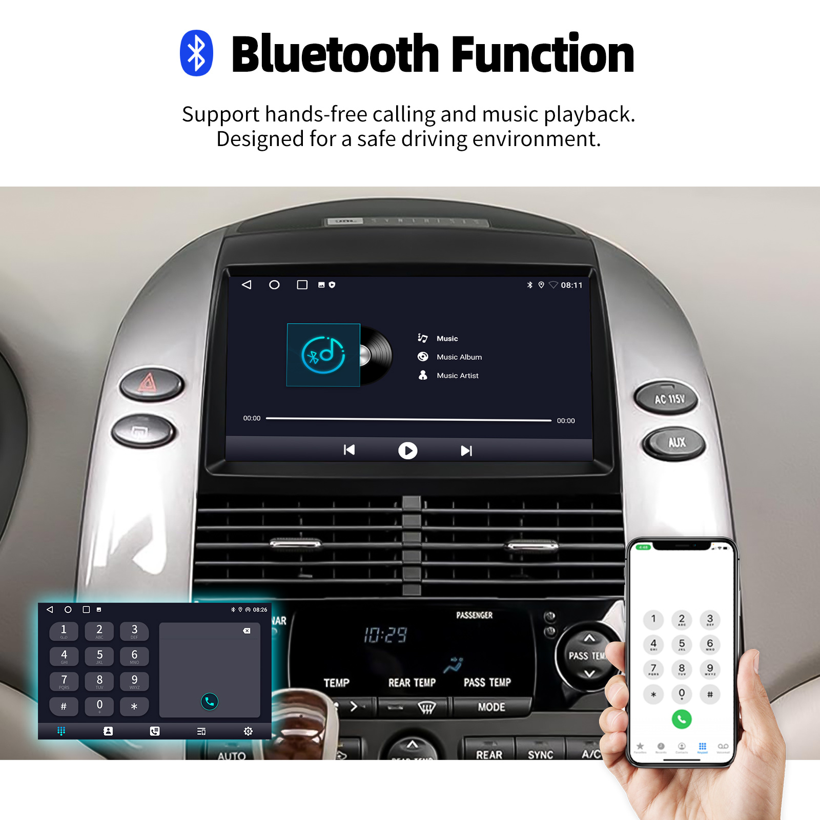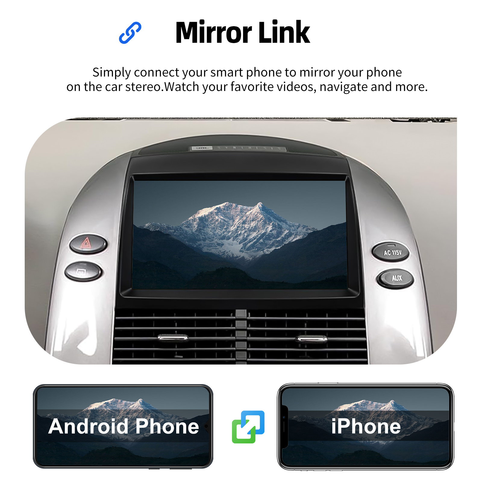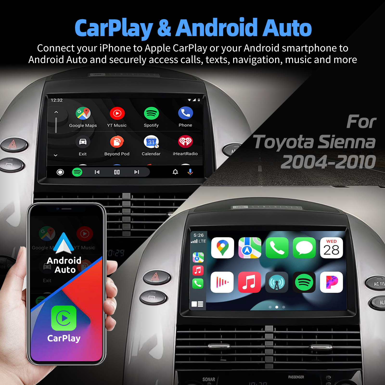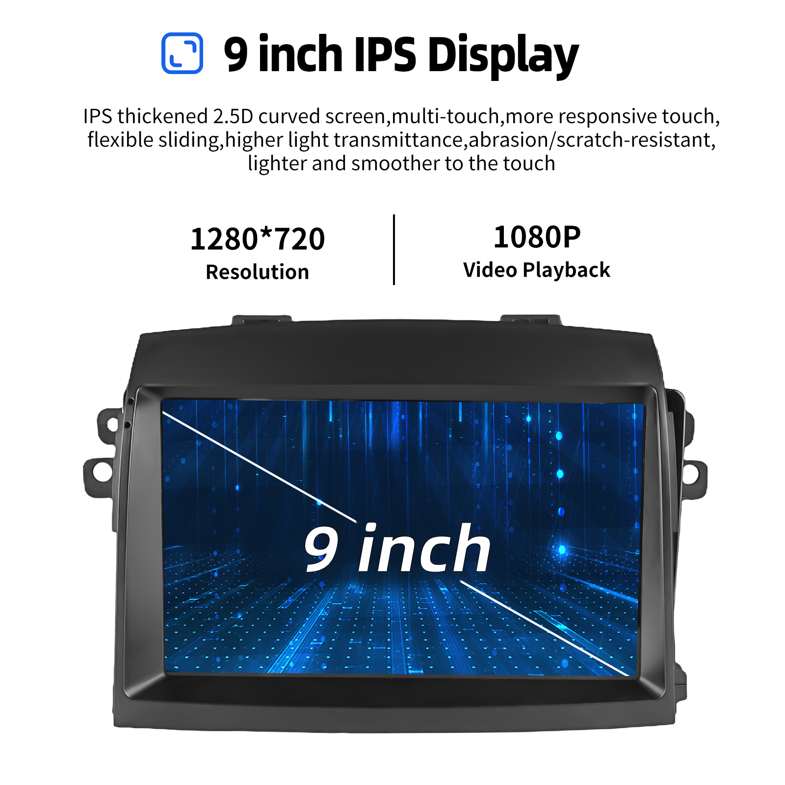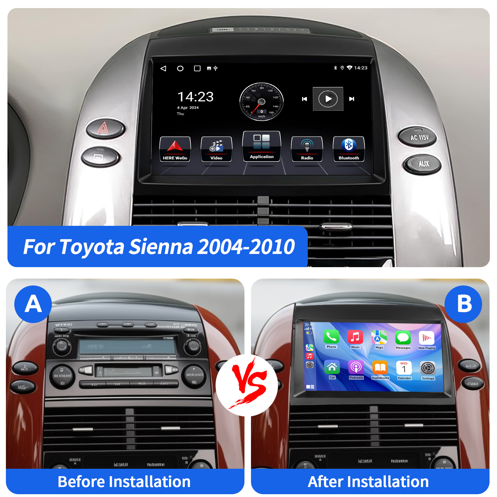 9 Inch Android 13 Car Radio For Toyota Sienna 2004-2010: The Android car radio with 9" 1280* 720 HD capacitive touchscreen, 2GB RAM and 32GB ROM allows you to download your favorite apps and videos, so driving is no longer boring. No extra frame, no cable change, plug and play. It comes with Canbus and supports most original functions: Steering wheel control, reverse signals and reading original computer data, etc.
