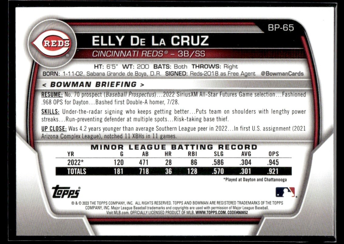 | 2023 Bowman Prospects Elly De La Cruz Cincinnati Reds #BP-65 |