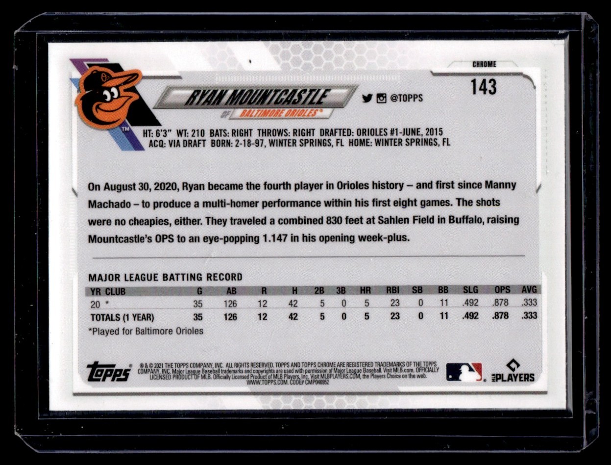 | 2021 Topps Chrome Sapphire Edition Ryan Mountcastle Rookie Baltimore Orioles |