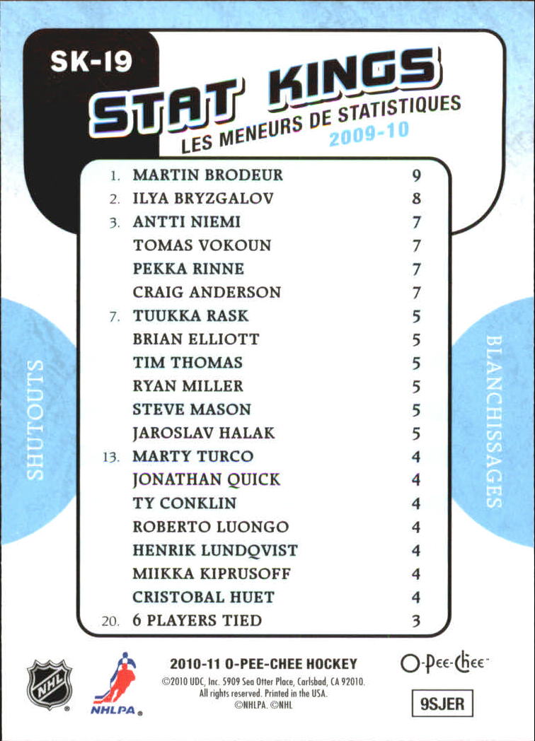 2010-11 O-Pee-Chee Stat Kings #SK19 Martin Brodeur - HKY