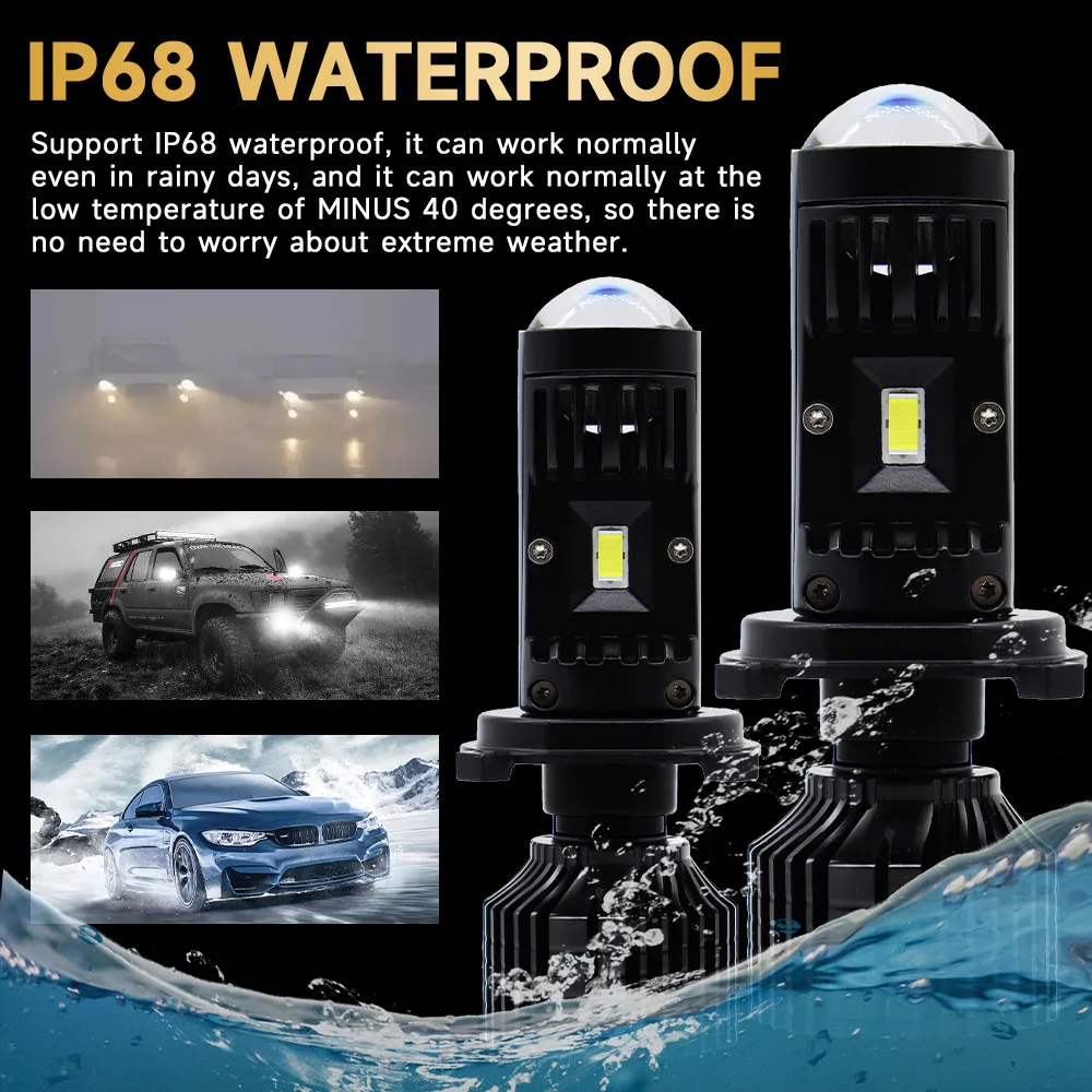 Car Headlight Mini Lens H4 H7 Mini LED Projector Turbo Fan Y10 Bulb Canbus Auto Motorcycles HeadLamp High Low Beam Fog Lights