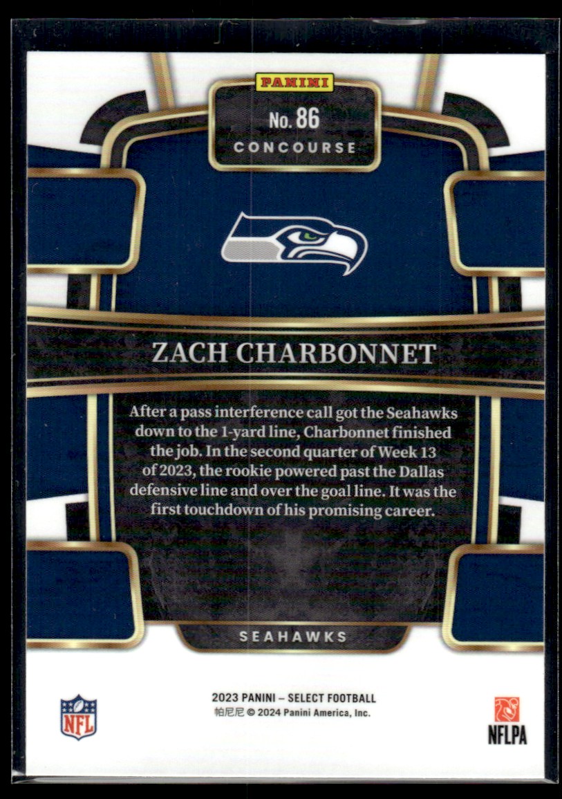 | 2023 Panini Select Zach Charbonnet Rookie Seattle Seahawks #86 |