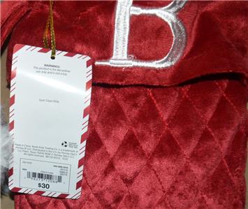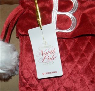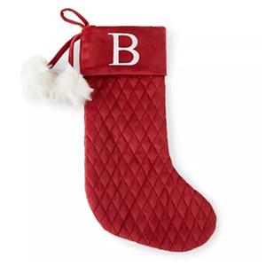 Add a special personalized touch to stocking displays for the holidays with this North Pole Trading Co. monogram style. Made from plush quilted velvet with faux fur pom poms, it also features an embroidered monogrammable B initial.