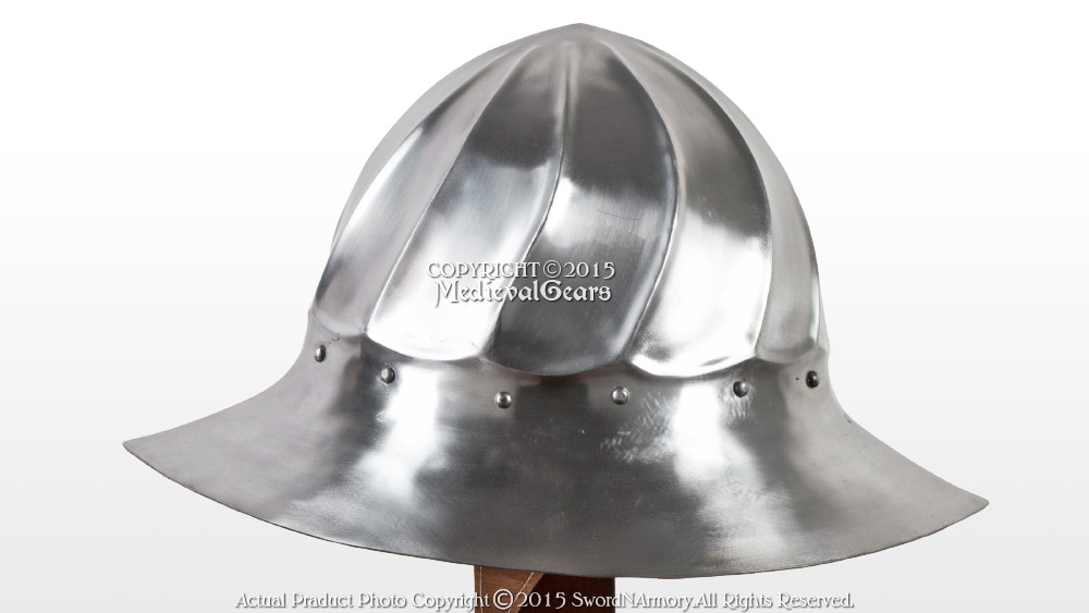 This is a Functional Battle Ready Burgundian Kettle Combat Helmet. Kettle Hat helmet was widely worn on the battlefields of Europe from the 12th to the 15th century. It offers excellent visibility with some face and neck protection provided by the brim.