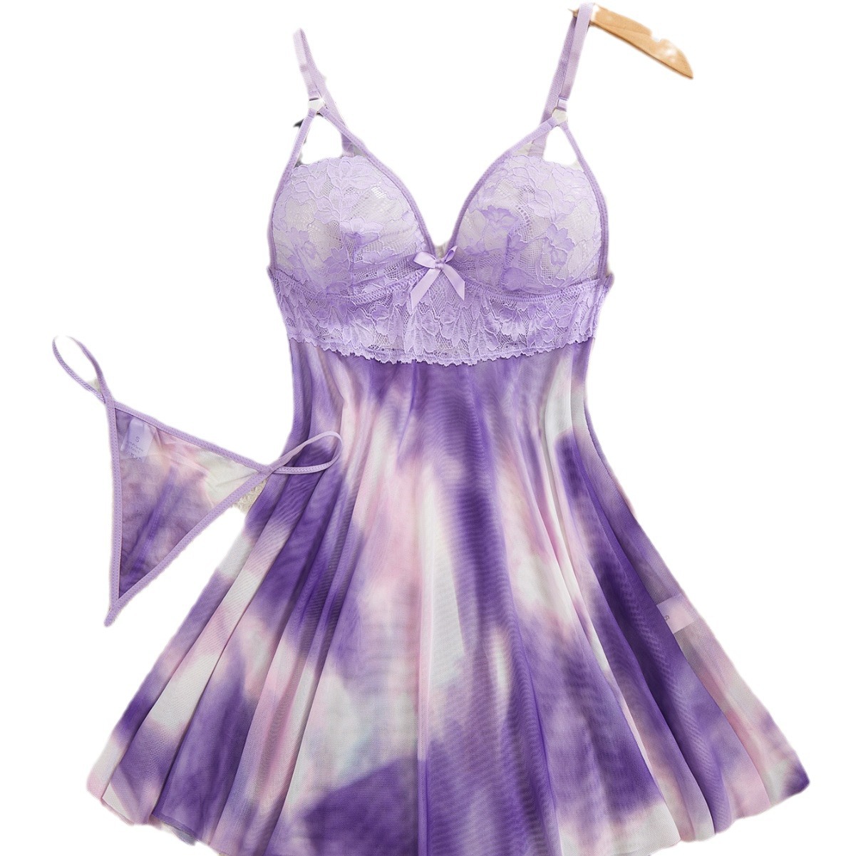 Lingerie for Women Sexy Babydoll Chemise Nightgown Lace Strap Nightwear Modal Sleep Dress in Purple Tie-Dye