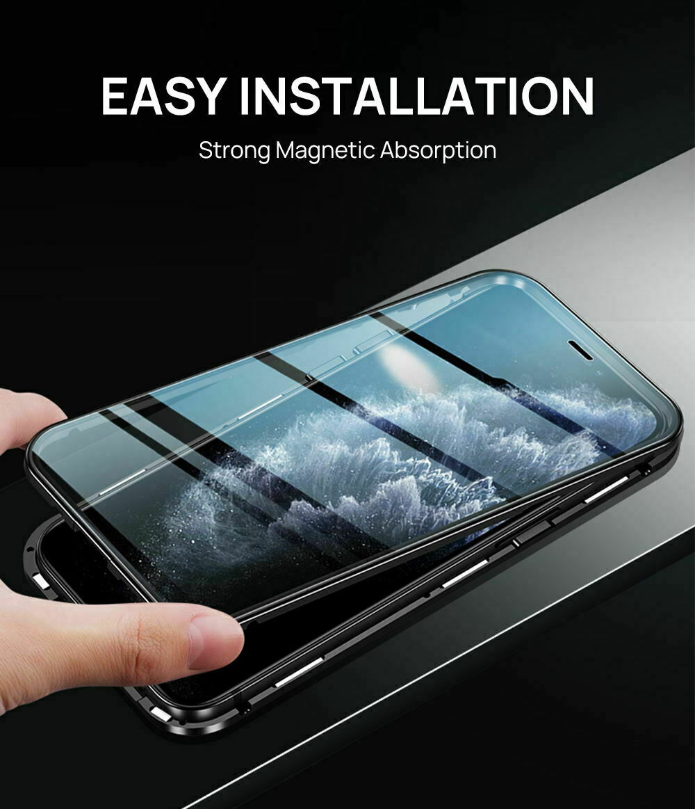 - Double Side Clear Tempered Glass:The Magnetic iPhone case has front glass r+back glass, shows the Apple logo and the original phone design clearly.360 degree cover, front and rear glass protection.