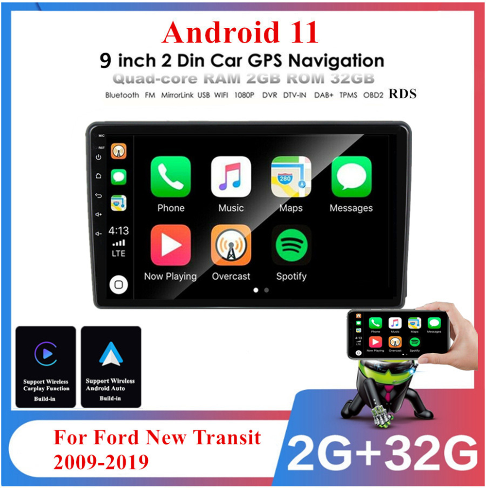 For 2009 - 2019 Ford Transit Carplay 9" 4+64 GB Android 15 Stereo Radio GPS Head Unit fm player audio