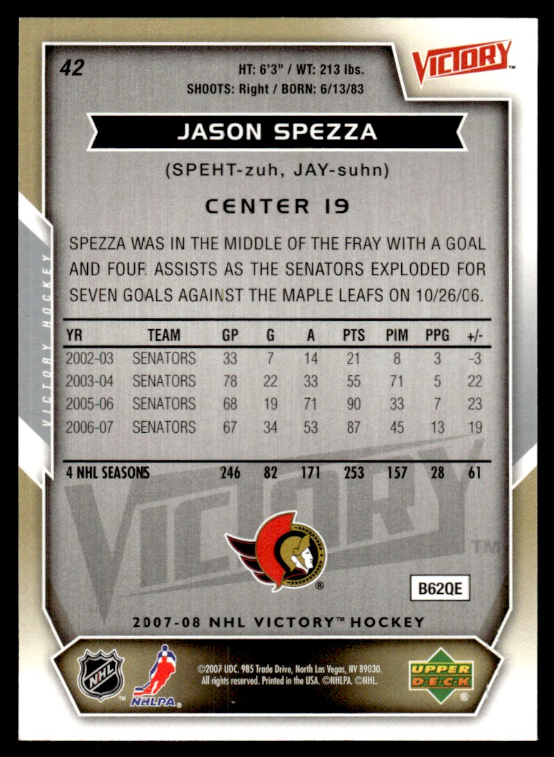 | 2007-08 Upper Deck Victory Jason Spezza Ottawa Senators #42 |
