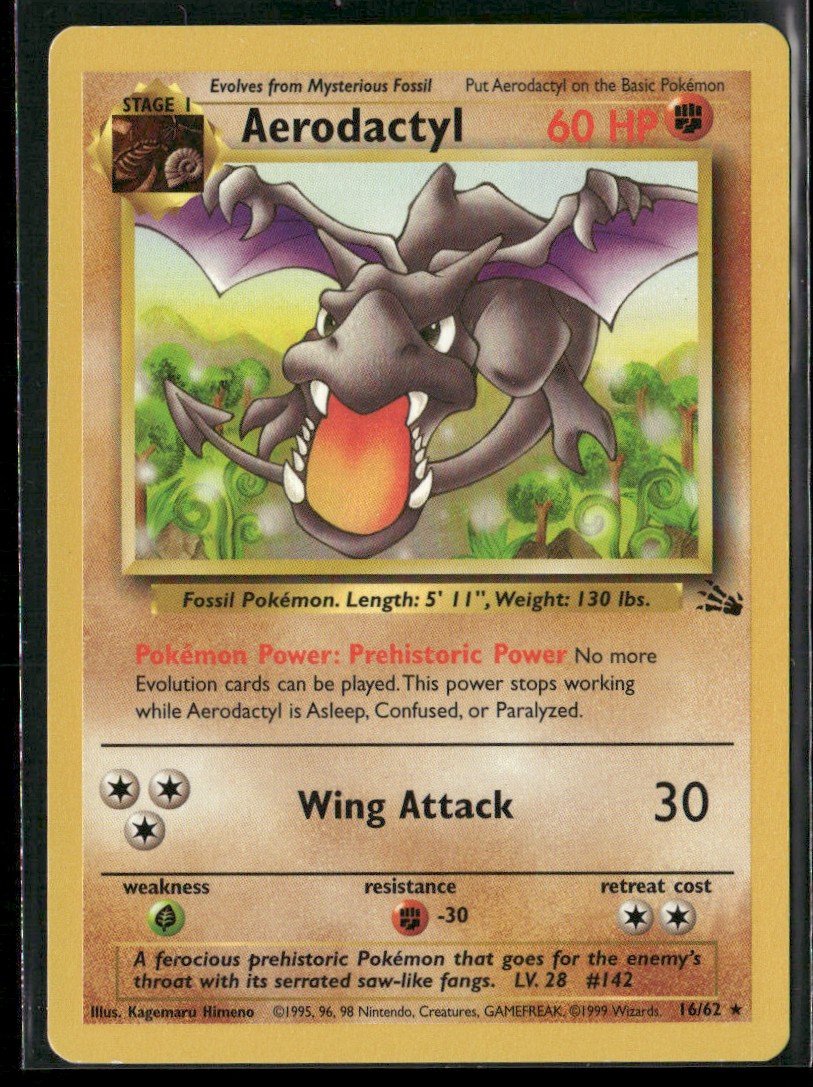 | 1999 Pokemon Fossil Pokemon Aerodactyl Rare #16/62 NM |