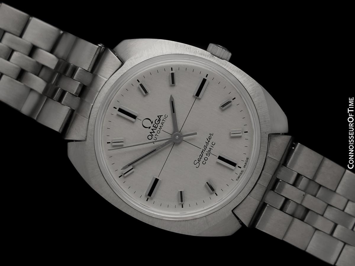 • Cadran: Silver, signé Omega Seamaster Cosmic, a appliqué à grande échelle des index en acier à facettes, d'origine et intacte, en parfait état