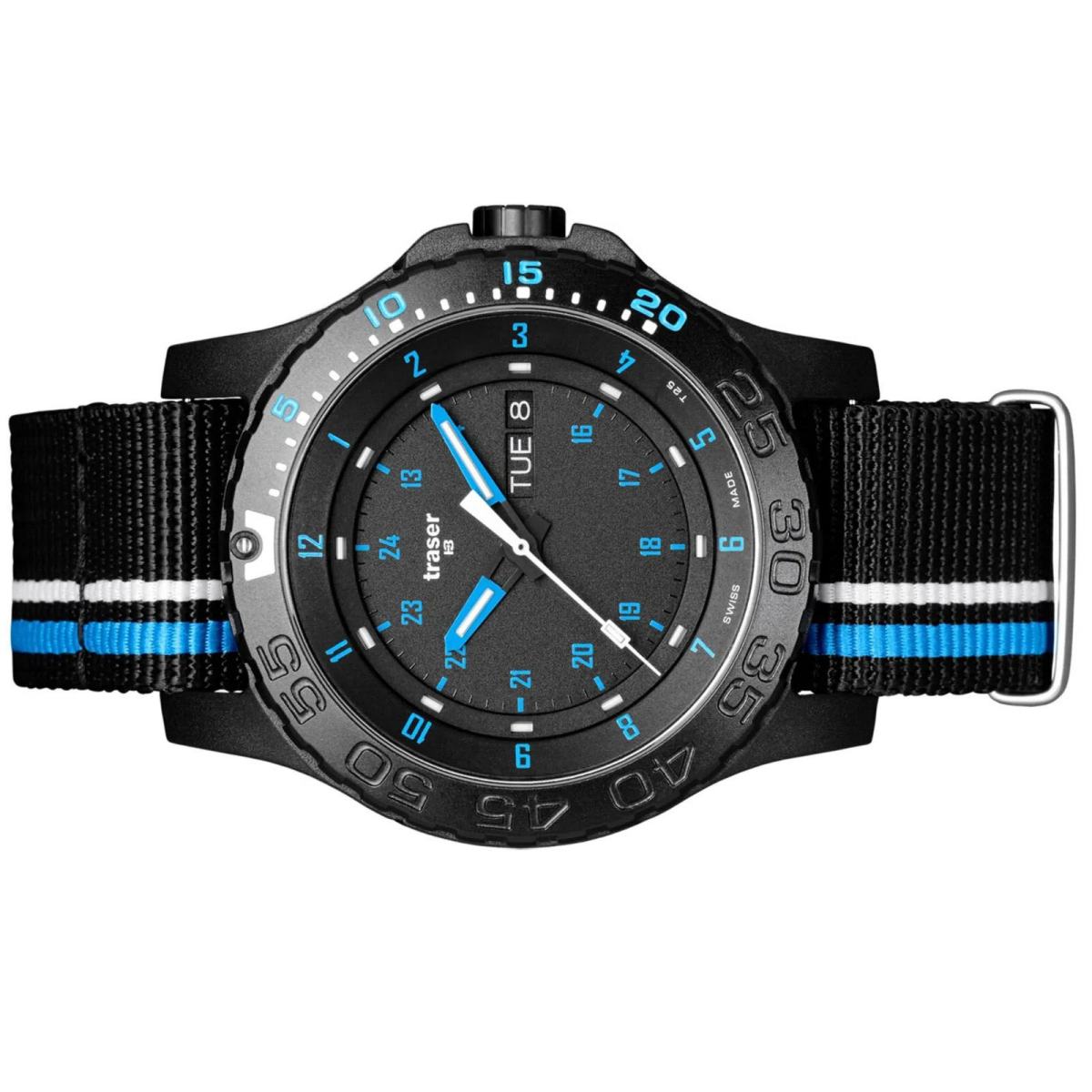 | Bracelet: | Textile strap bracelet black / Baloo with pin buckle Width: approx. 2.2cm Length of the clock (total length): approx. 28.0cm, Arm circumference: approx. 17cm to 24.5cm |