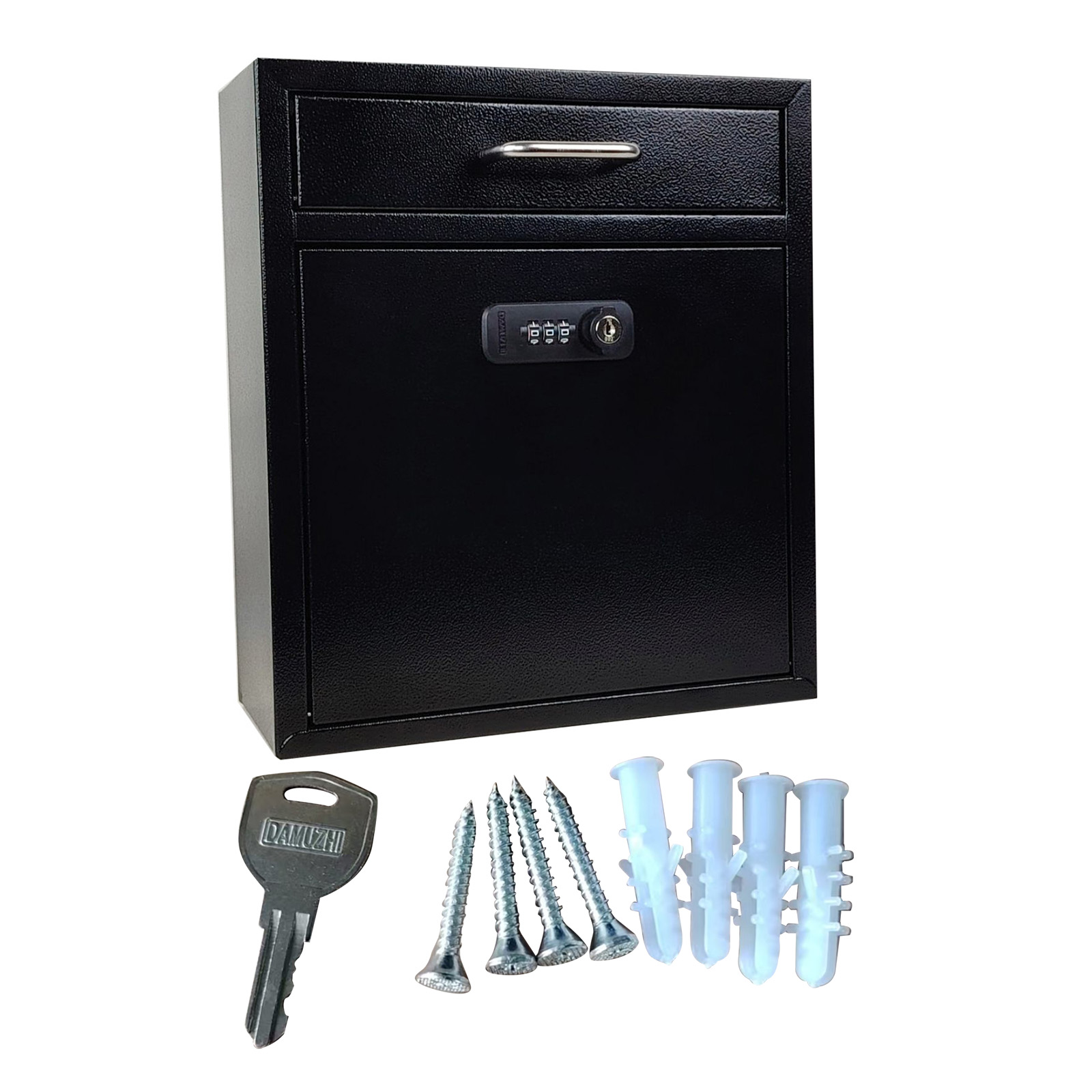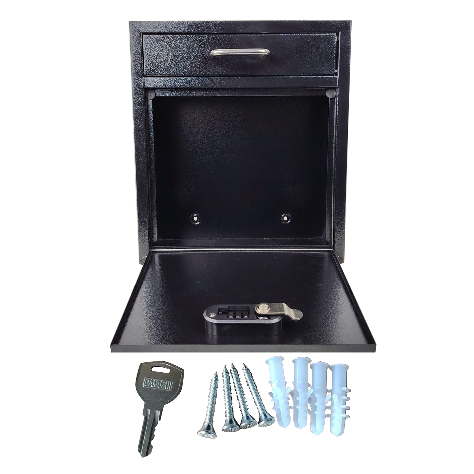 4. Wall-Mount Box: This Wall Mount Mailbox With Lock Is Designed To Be Installed On Walls Of Offices, Schools, And Home. Simply Use The Hardware Provided To Mount This Lockable Mailbox, And The Wall Mount Locking Deposit Drop Box Safe Can Be Used Immediately.