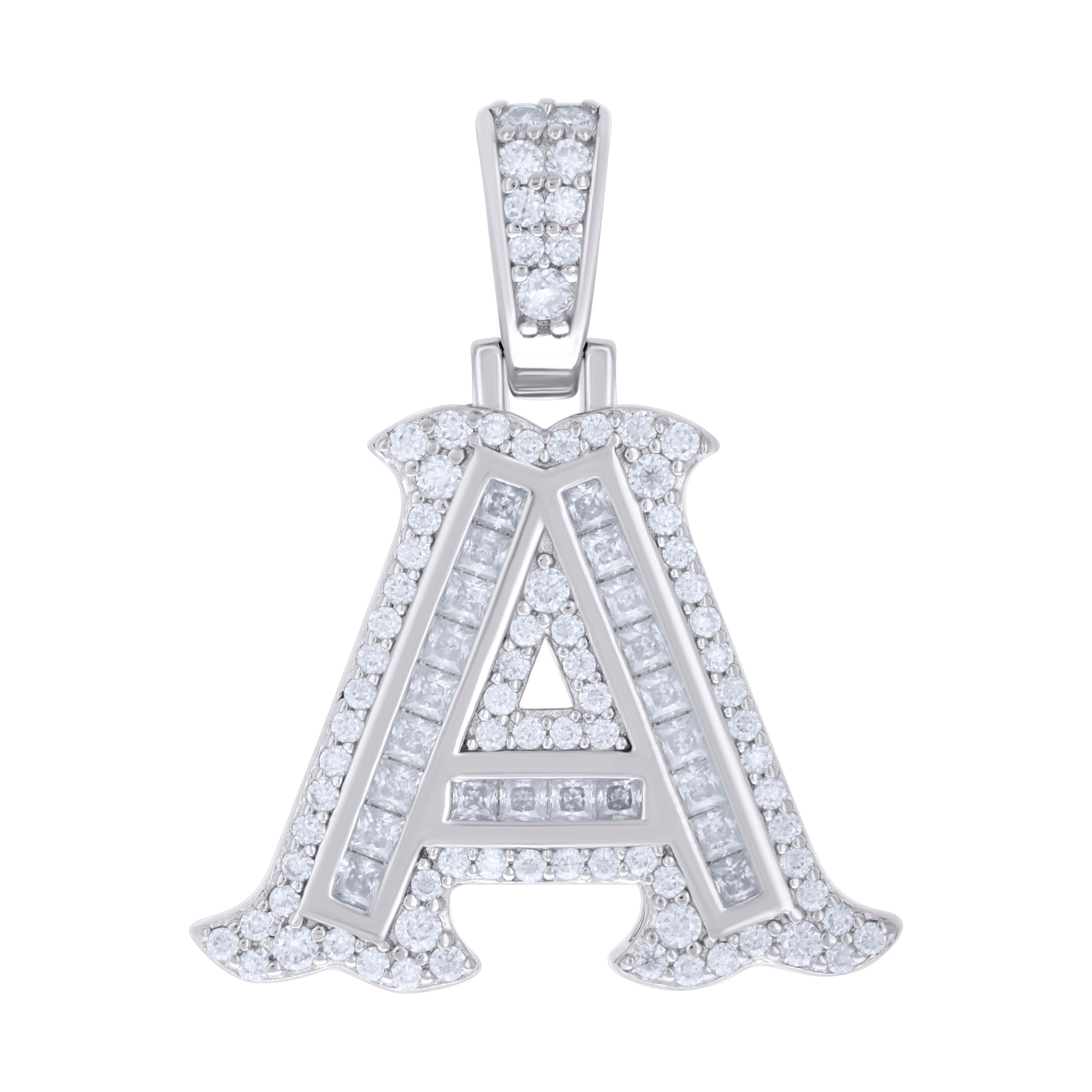 This eye-catching Moissanite Initial A | Block Font Pendant is crafted in 925 Sterling Silver and shimmering White Moissanite, ensuring sparkle from every angle. Radiant with 0.59 ct. t.w. of Moissanite, this pendant is polished to a lustrous shine. Exclusive style has a well built frame to withstand everyday wear and tear. The Moissanite are secured in Prong setting close together, making the overall appearance larger and lustrous. A matching bail to compliment this pendant. These are all 100% genuine Round & Princess cut Moissanite with matching clarity and color throughout. This Pendant measures 31mm (including the bail) long and weighs approx. 4.1 gr. This style would make a perfect addition to your jewelry collection.