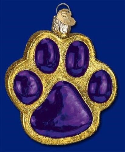 Old World Christmas Purple and Gold Paw Print Glass Ornament 12291 FREE BOX New