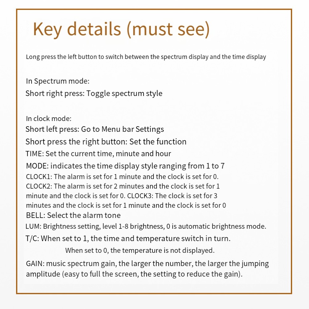 Musik-Spektrum-LED-Indikator unterstützt Zeit-Einstellungen für 3 Weckergruppen, 7 Musik-Klingeltöne und zeigt den aktuellen Temperaturwert an.