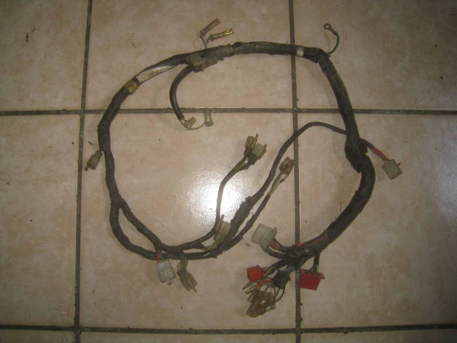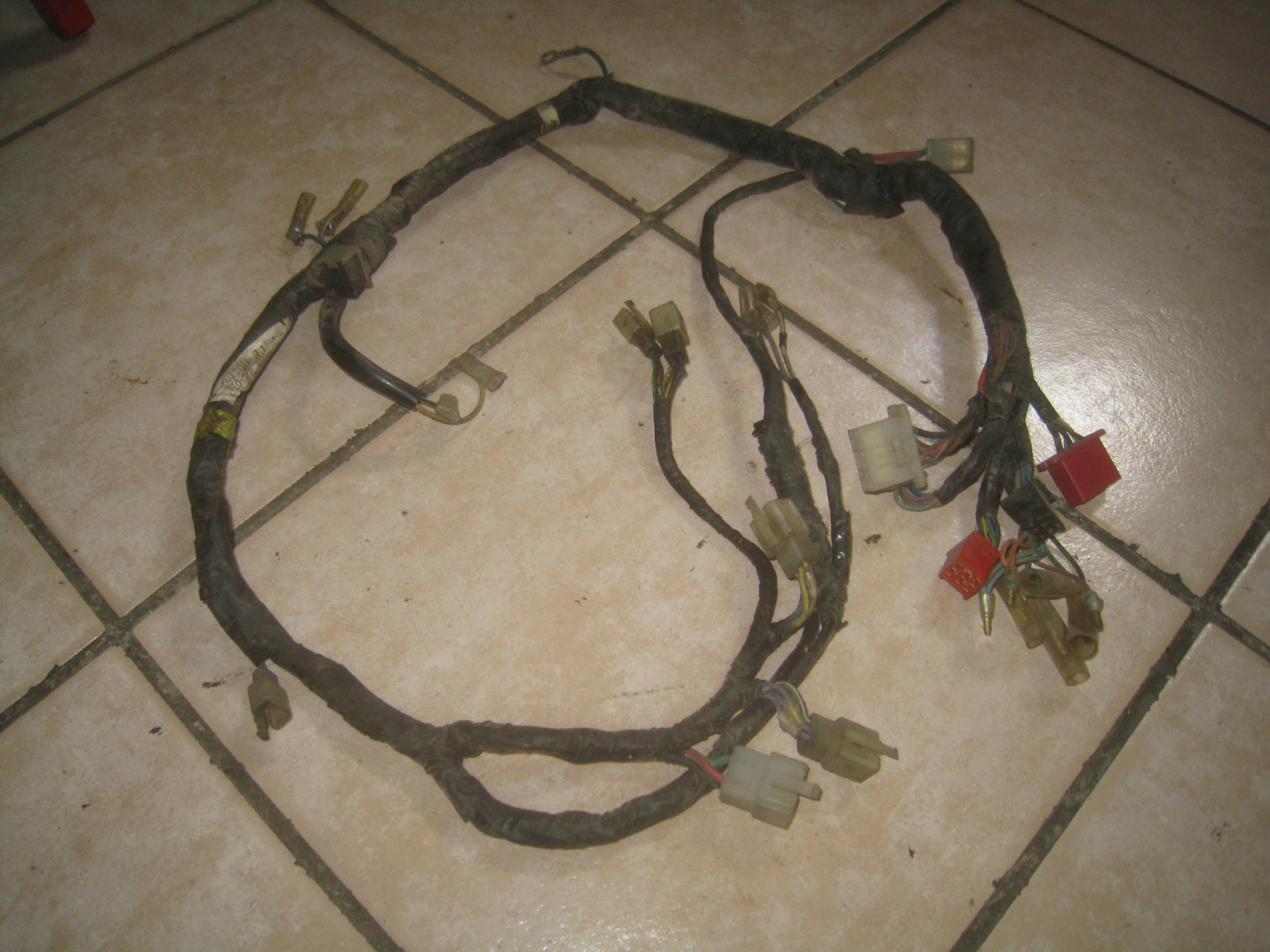 Compl. comme illustré : Faisceau de câbles d'origine fonctionnel pour le CB 650 RC03 BJ.79-83. Toutes les fiches dans l'ordre. Signes d'usure habituels pour l'âge présents.