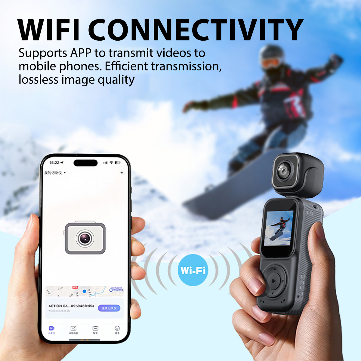4. WiFi hotspot connection: the camera comes with its own hotspot, which can be connected to the mobile phone, and the recorded videos and photos can be viewed and downloaded in the mobile APP.